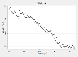 Here are the latest data on my weight, which seems to be stabilizing: